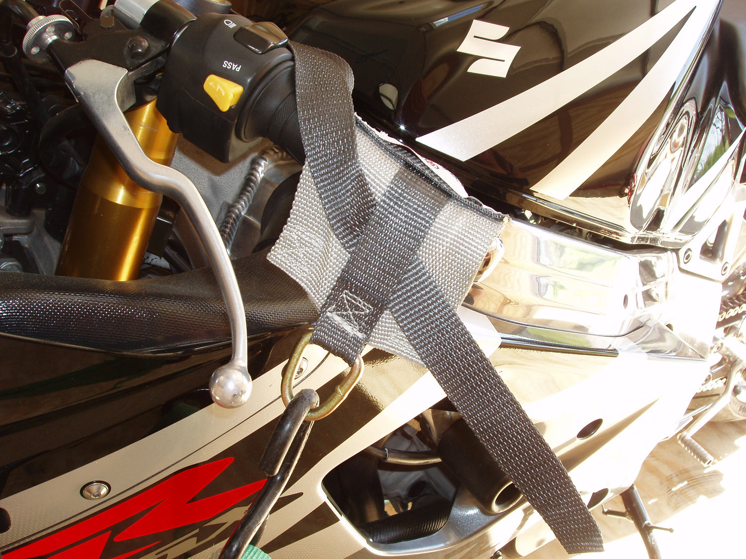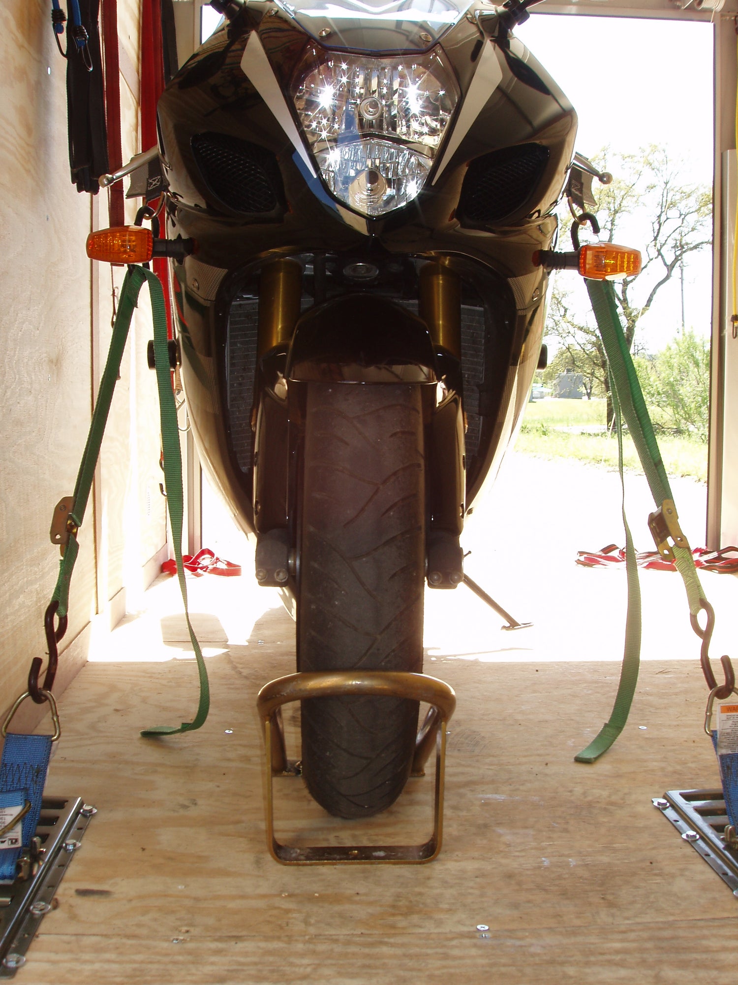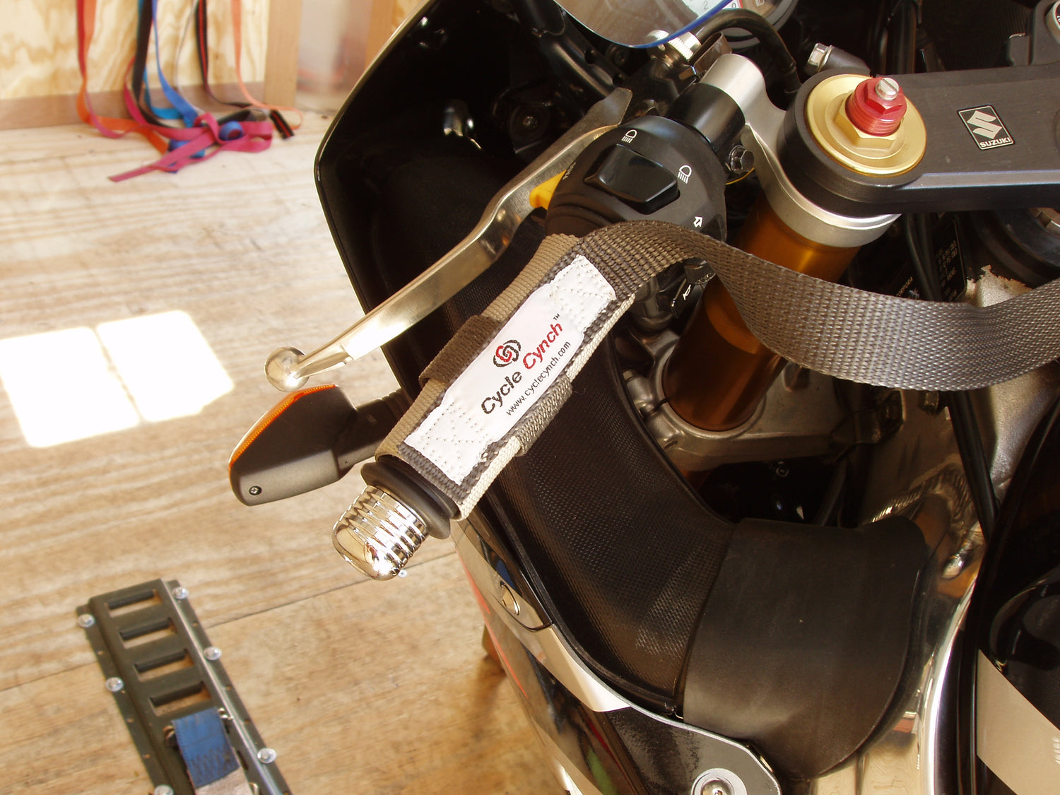 - Tie off the rear of the motorcycle using the Cycle Cynch Rear to keep the back side from moving around in your trailer or truck bed