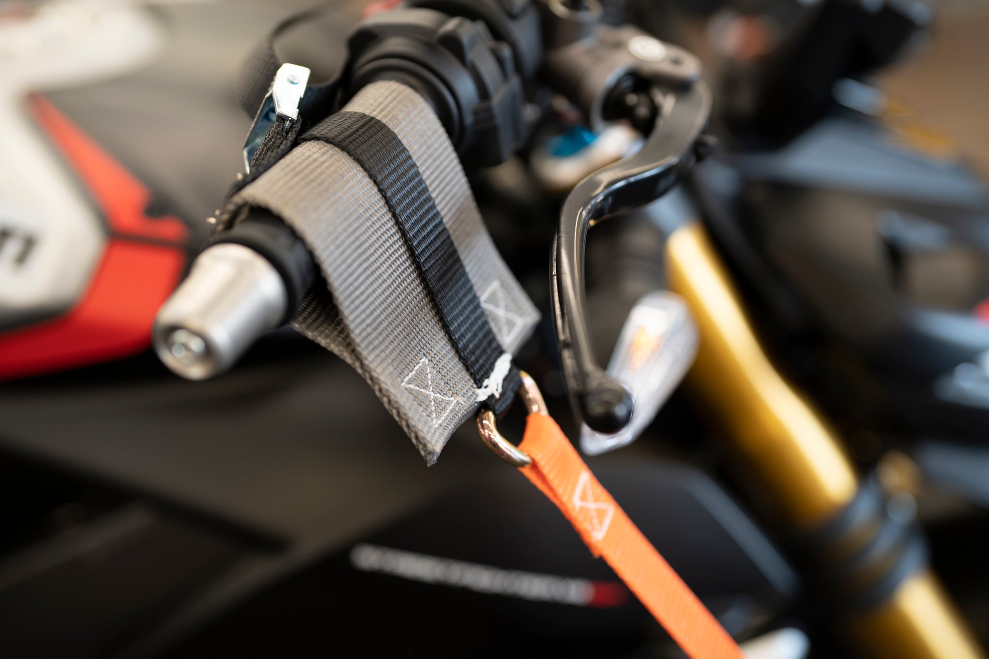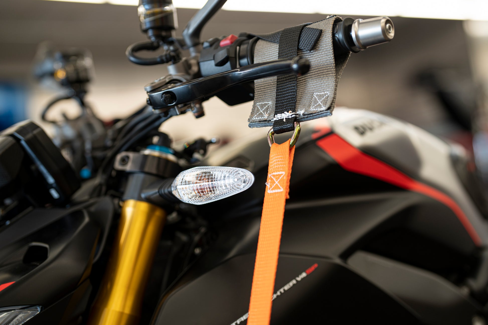 Just like the Original, only we've sewn on 6' tie downs to the D-ring with the quick cam buckle at the bottom so you can easily pull up to tighten them.